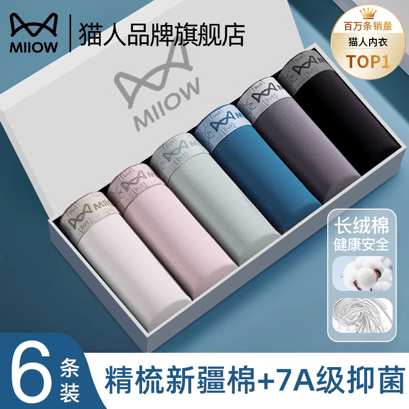 Cat Man Men's Underwear Pure Cotton 2025 New Boys Breathable Antibacterial Men's Square Corner Boxer Men's Pants Plus Size