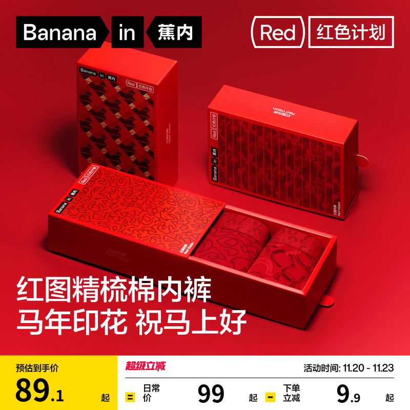 Gift box|Banana red plan 501C red underwear gift box male and female couple pure cotton breathable crotch natal year marriage