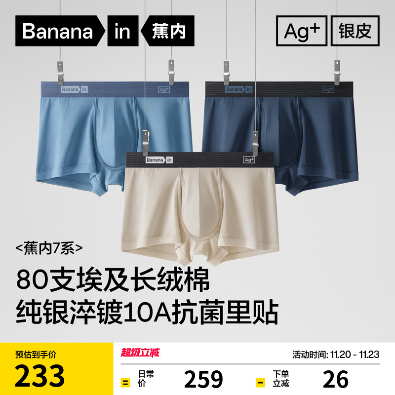 3 pieces|Banana silver leather 701S men's boxer underwear pure cotton new breathable and comfortable anti-pinch hip boxer shorts