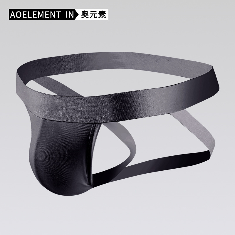 Men's low-rise solid color U-convex stretch tight sexy T-pants Ice silky high-fork thong breathable T-pants sporty