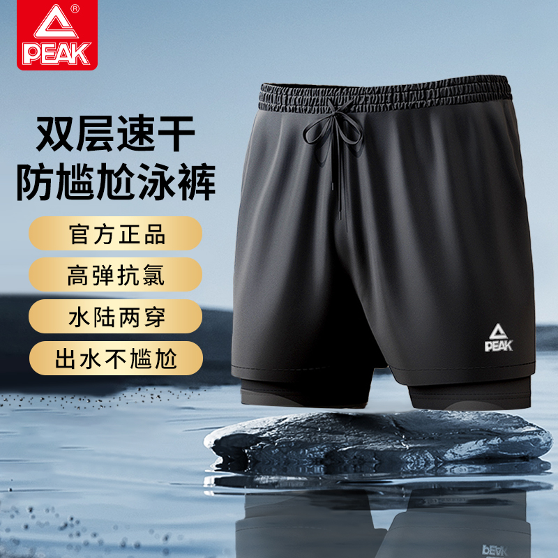 361 five-point swimming trunks men's dad middle-aged and elderly swimming trunks double-layer 2025 new adult anti-embarrassment plus size beach