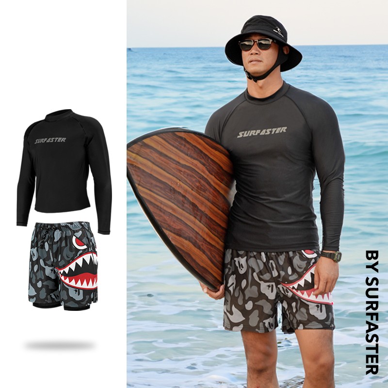 Speed wave men's swimsuits, sunscreen, surfing suits, swimming trunks, quick-drying long-sleeved tops, beach suits