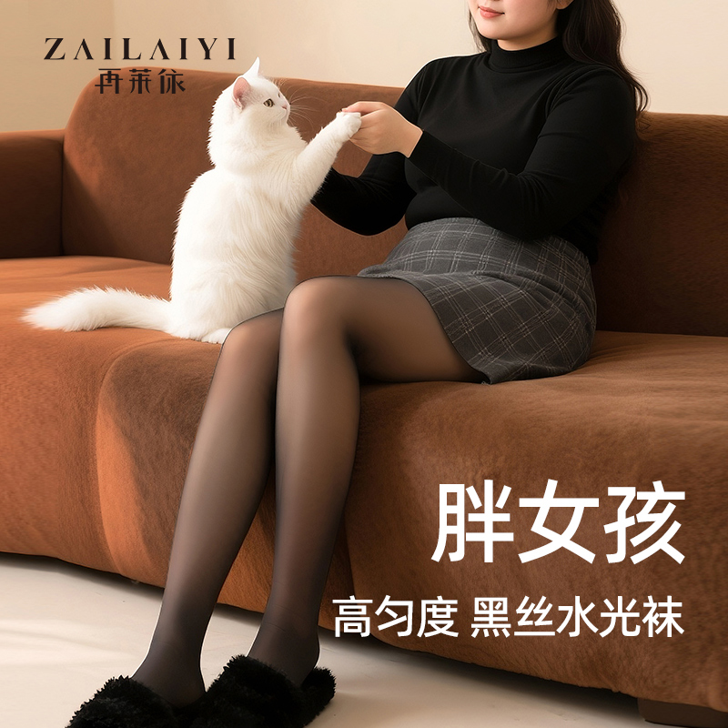 Zai Lai large size plush black silk water socks fat mm 200 pounds female spring and autumn fake fleshy black skin transparent leg artifact