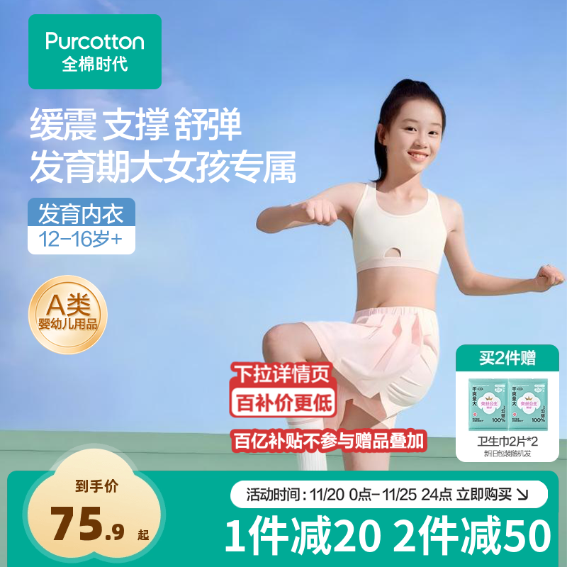 Girls' underwear developmental students, junior high school girls, the second stage of sports, shockproof, adolescent, pure cotton bra suspenders