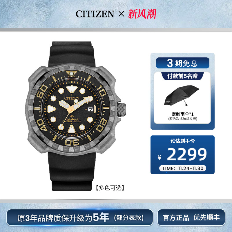 Citizen flagship store official website genuine new little turtle Shubo Titanium Light Kinetic Men's Diving Watch BN0228