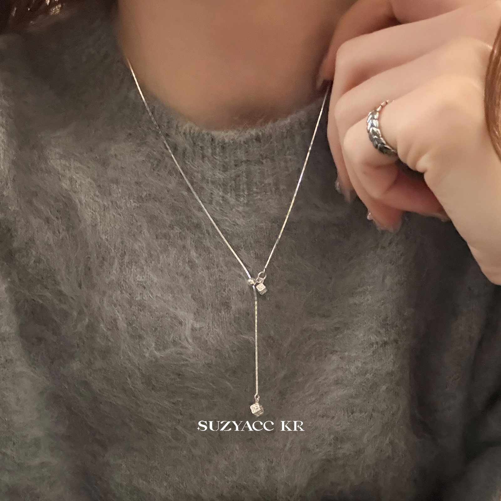 suzyacc kr versatile sterling silver square pendant pull-up necklace women's 2025 new simple niche high-end necklace