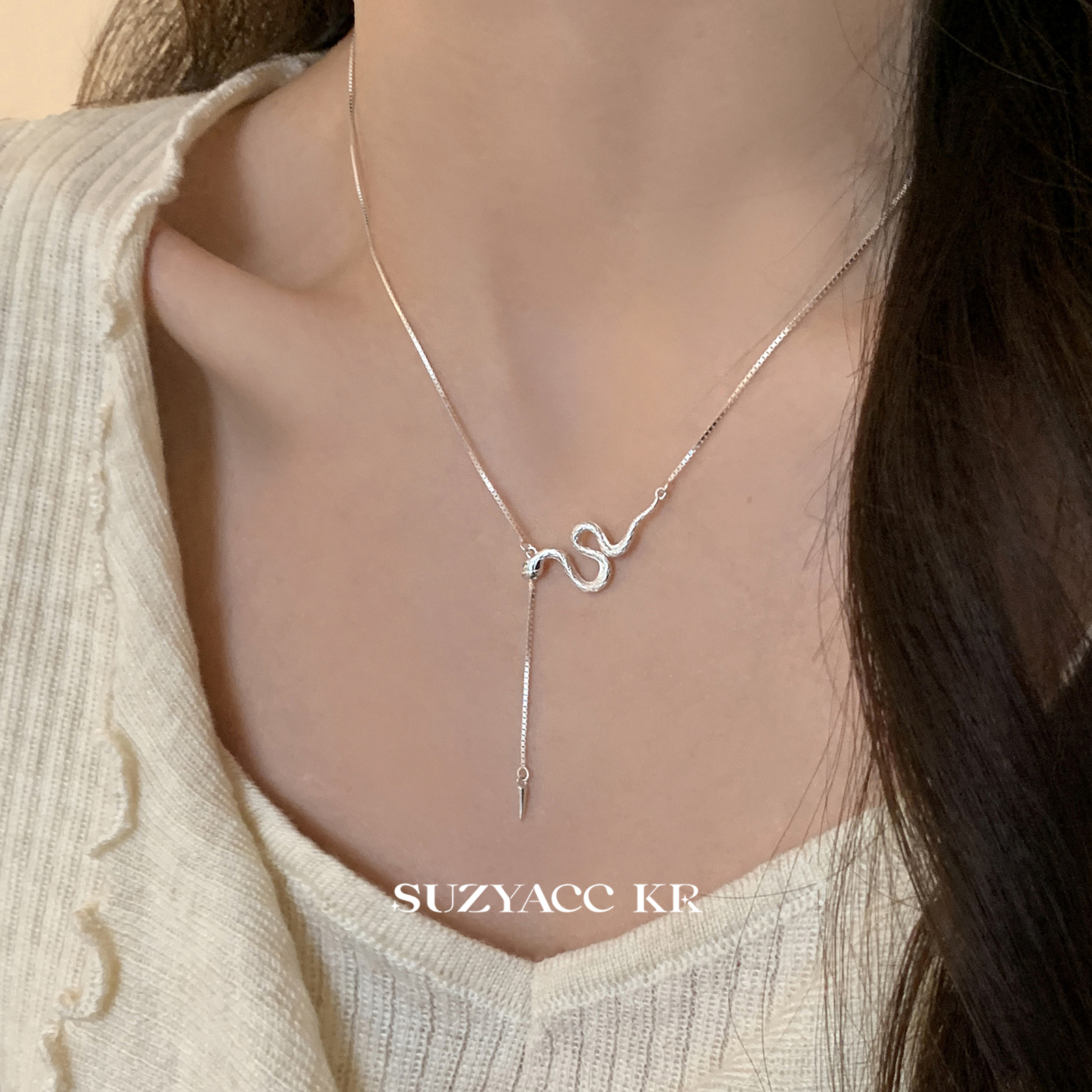 suzyacc kr snake year limited shining tassel sterling silver zodiac snake spirit snake collarbone chain niche design necklace for women
