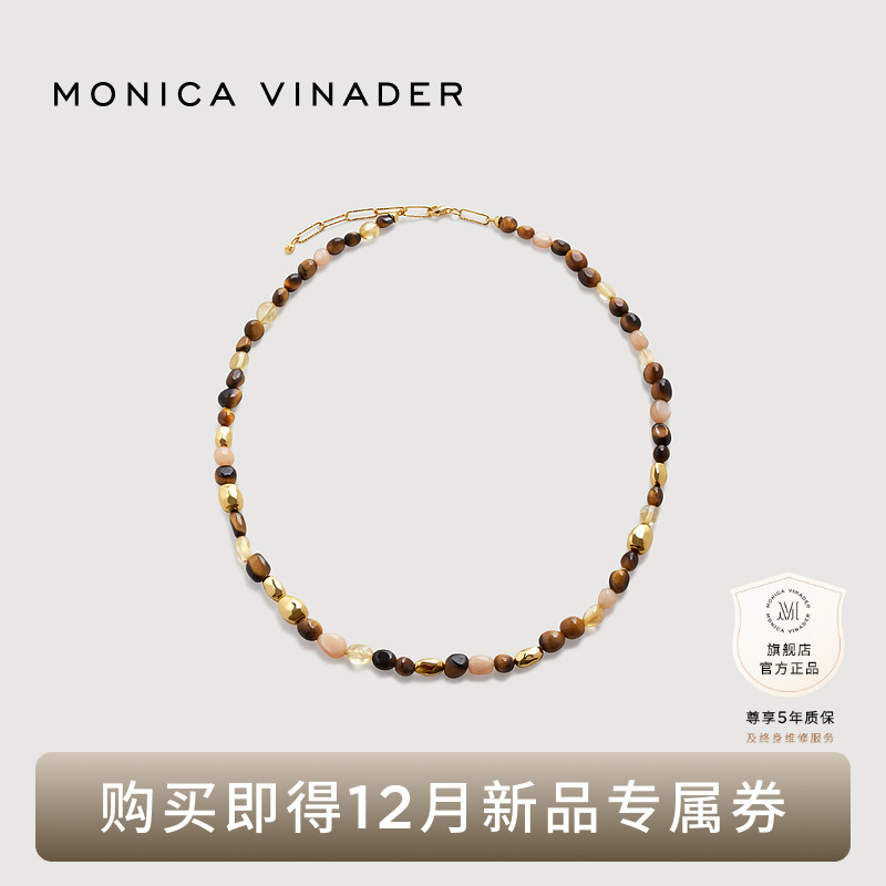 Monica Vinader Monica Caramel Tiger's Eye Necklace Beaded Necklace Light Luxury Sweater Chain Autumn/Winter Design