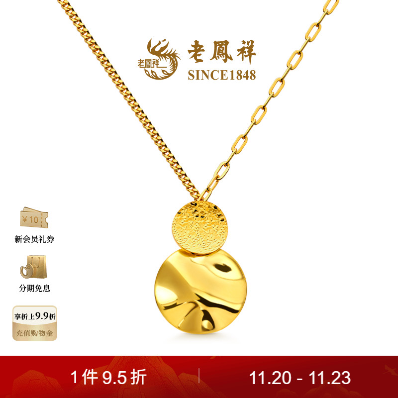 Lao Feng Xiangfan series texture splicing high-gloss crushed ice gold pure gold necklace priced female gift