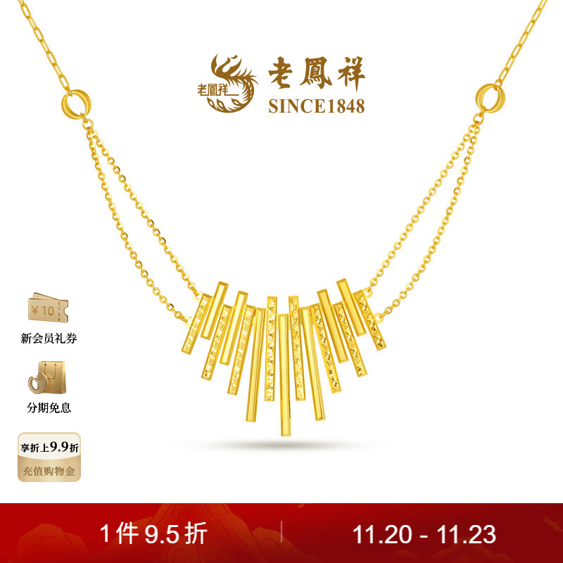 Lao Feng Xiangfan series simple geometric rhythm note gold pure gold necklace female gift crushed ice pricing