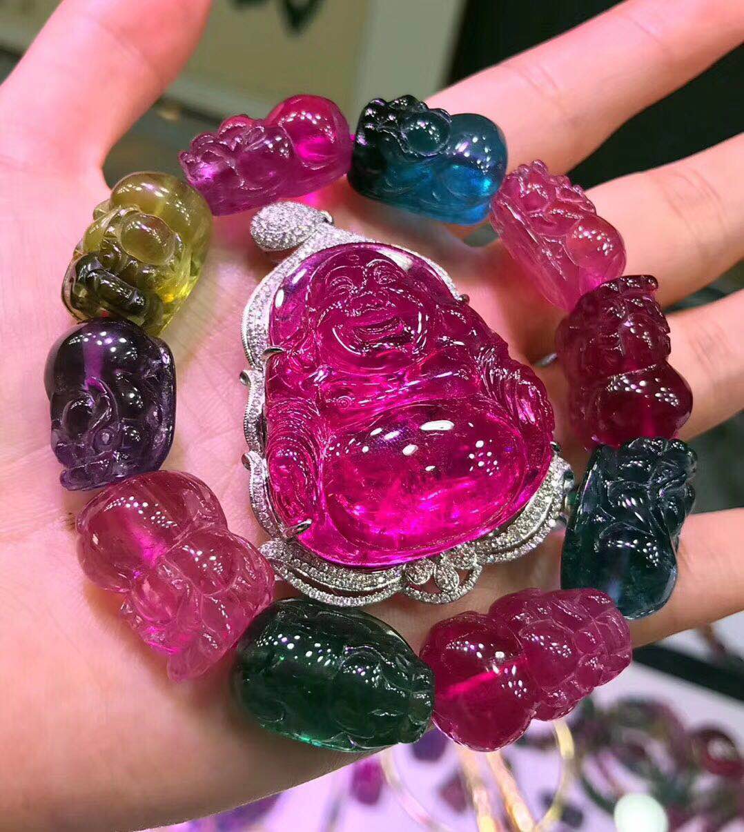 Natural genuine Brazilian tourmaline rainbow macaron candy watermelon brown sugar fluorescent old mine bracelet women's single circle bracelet