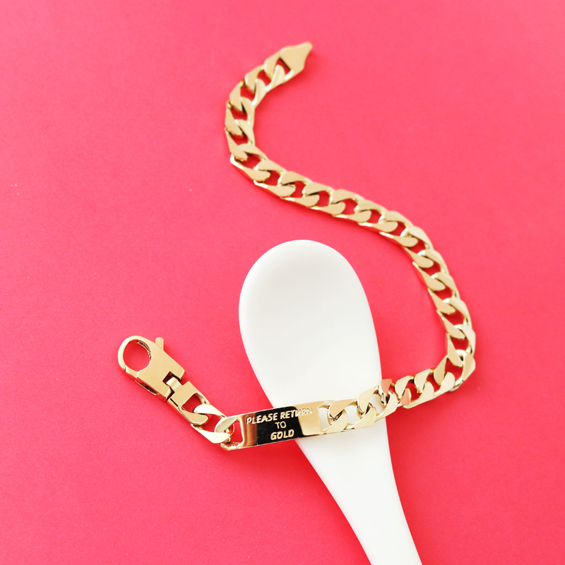 Blueberry Home Korean pure 14k gold gold bracelet simple atmospheric wide version flat chain tank chain k gold color gold bracelet