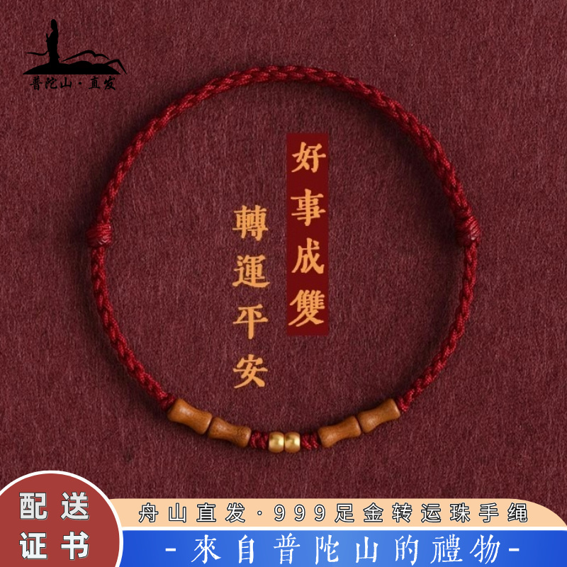 Putuo Mountain Cultural and Creative Collection, 999 feet, gold transfer, beads, red bracelets, ankles, men's and women's peach wood bamboo joints, and the birth year is safe