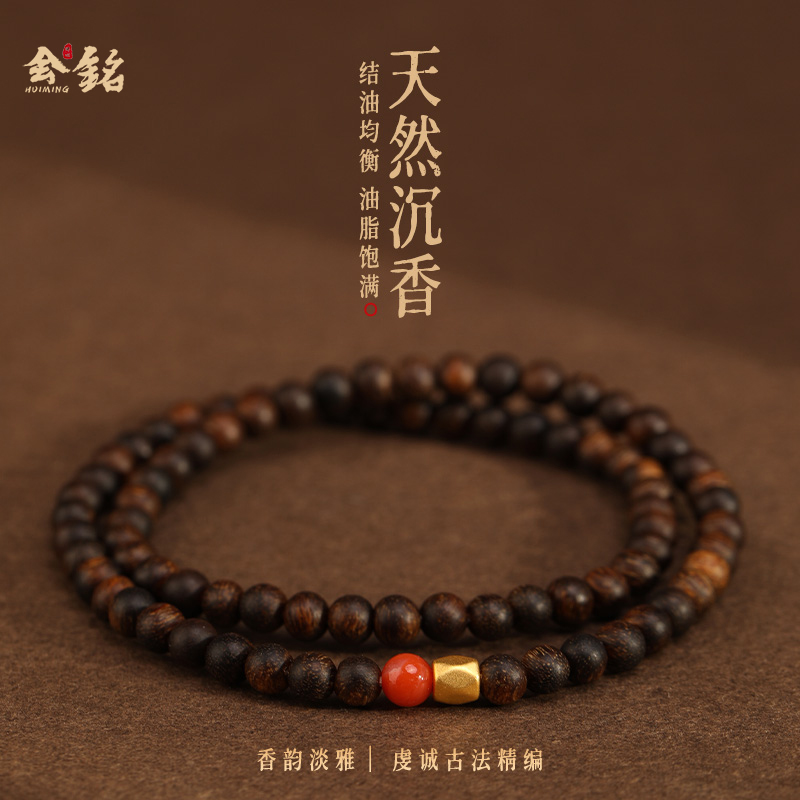 Genuine 999 pure gold transfer bead bracelet natural agarwood Buddha beads double circle small rosary female gold bracelet natal year