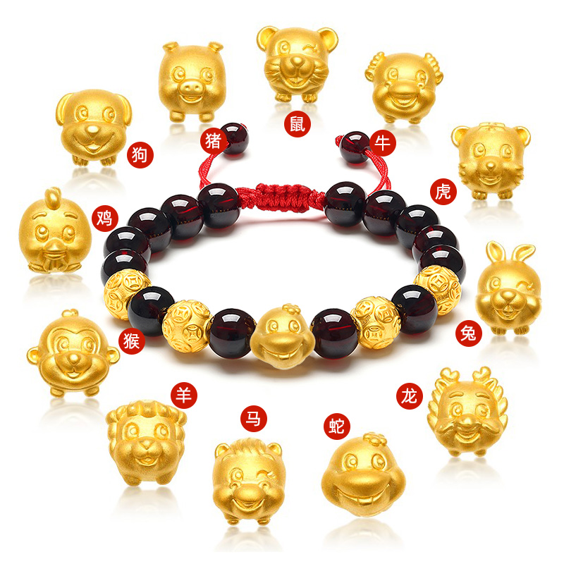 12 zodiac gold bracelet female pure gold 999 zodiac snake garnet transfer bead natal year small golden snake bracelet
