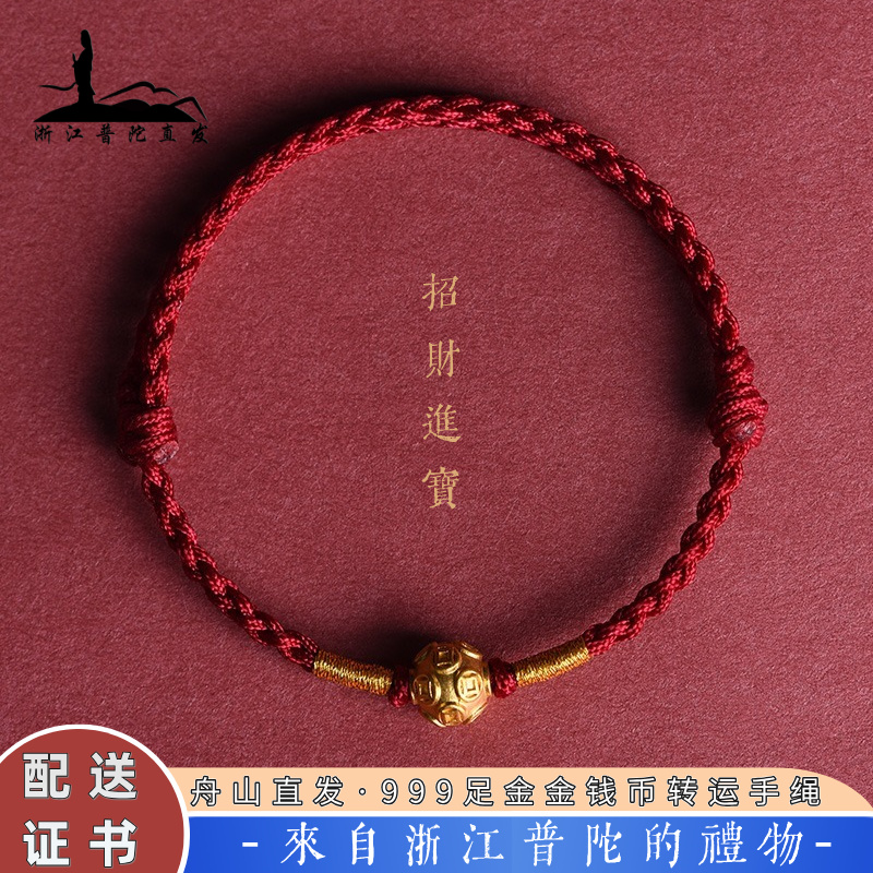 999 pure gold gold gold coin red rope bracelet male and female snake horse sheep natal year safety transport bead braided bracelet