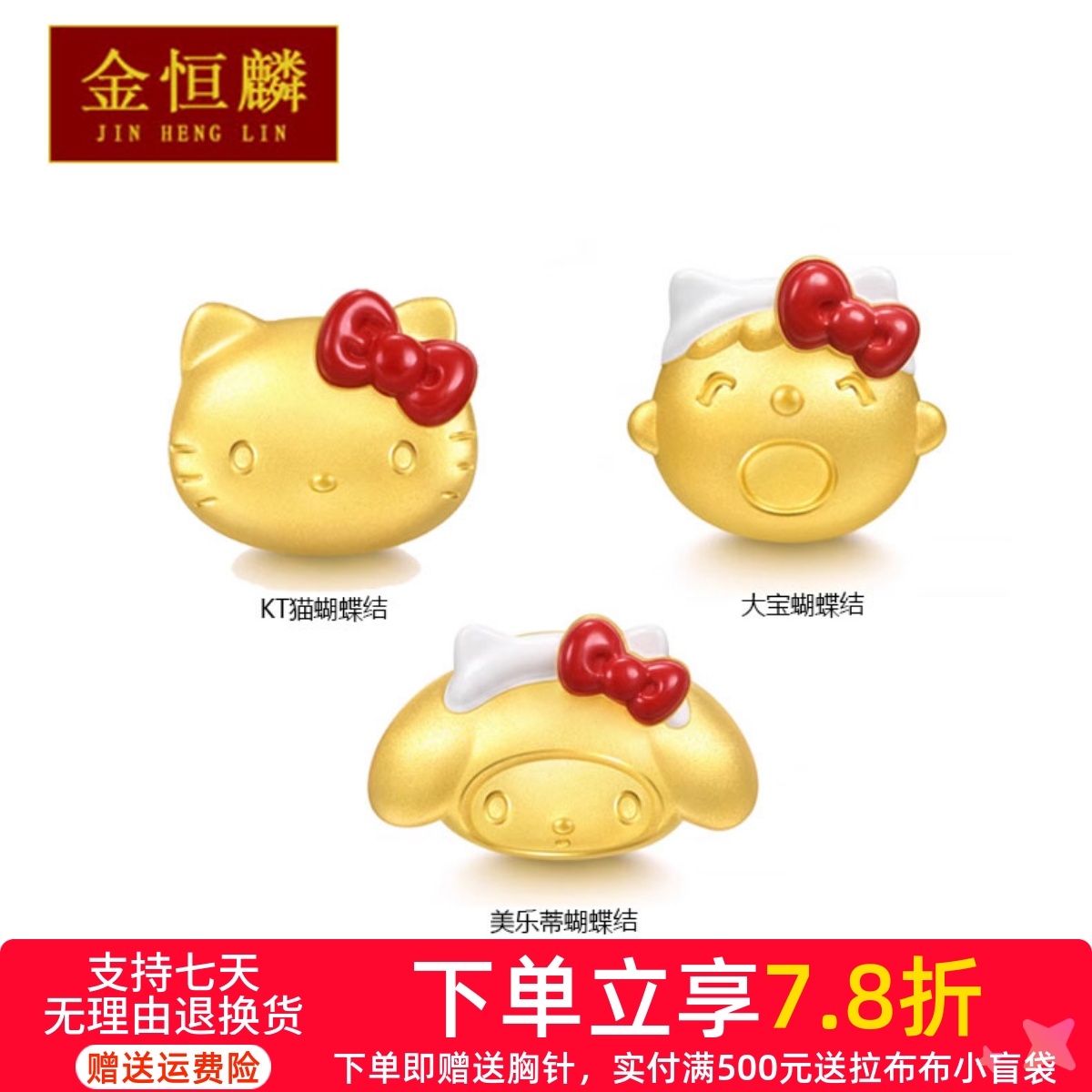 999 pure gold Sanrio family HelloKitty 50th anniversary KT cat gold transfer beads 3D hard gold bracelet girl