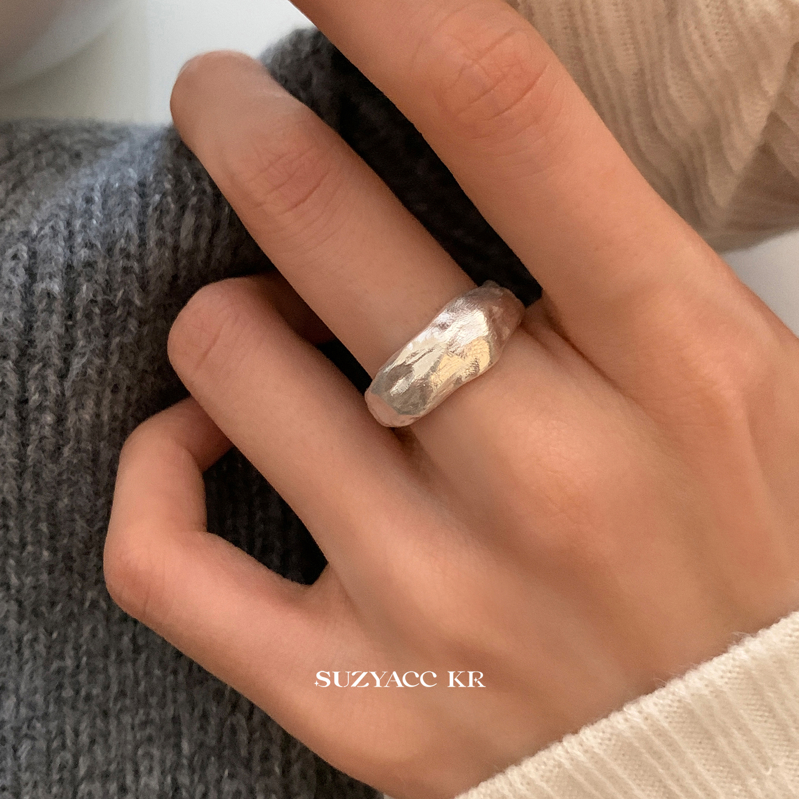 Suzyacc kr sterling silver matte brushed irregular lava ring light luxury luxury high-end index ring adjustable