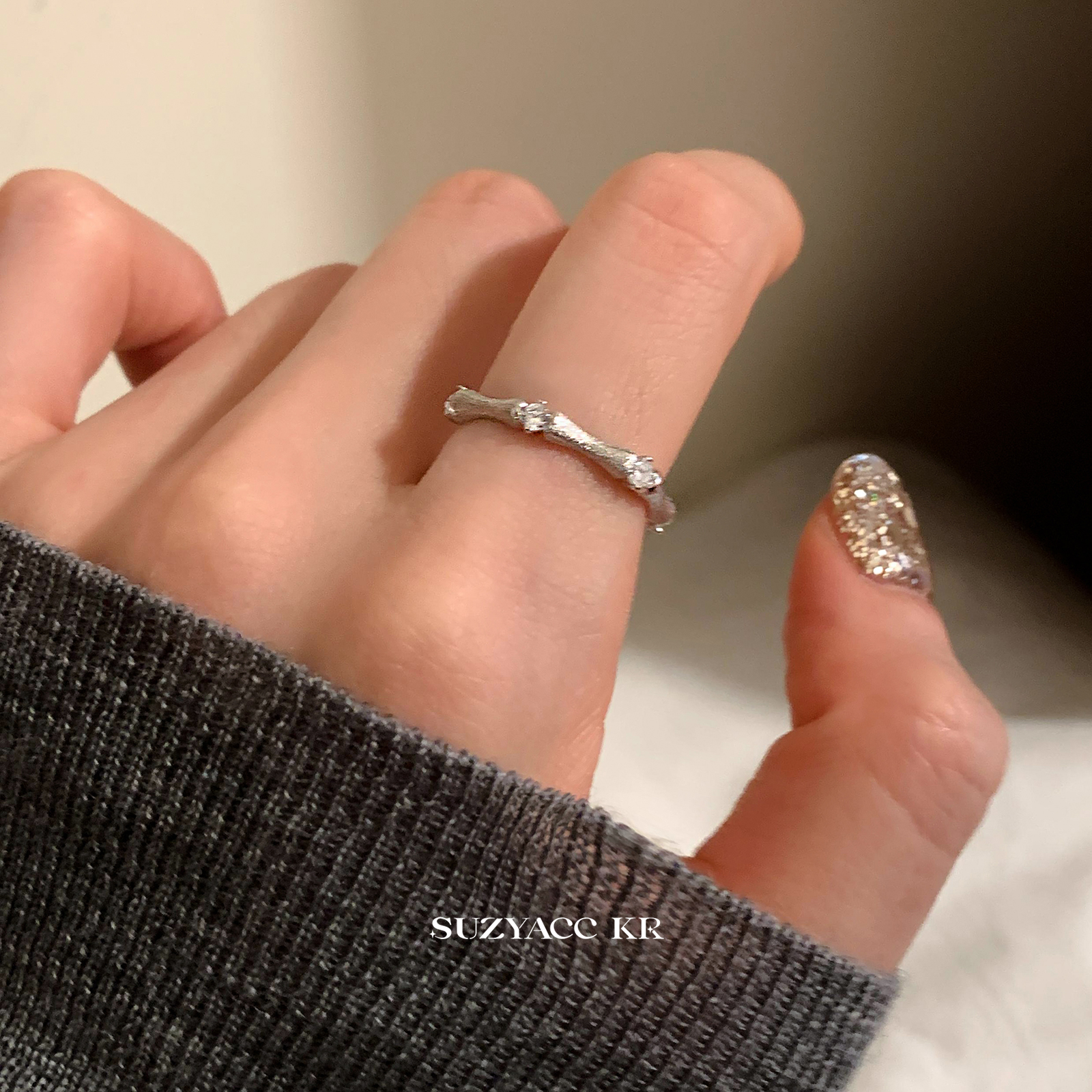 Suzyacc kr sterling silver brushed synthetic zircon bamboo ring light luxury niche exquisite high-end food ring