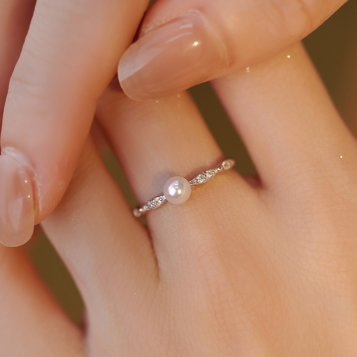 Cecelian natural freshwater pearl ring S925 sterling silver simple light luxury temperament adjustable niche design women