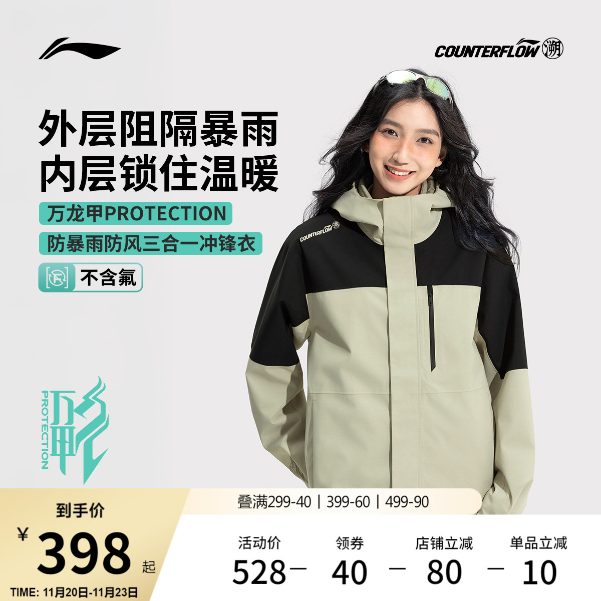 Li Ning outdoor CF trace丨Wanlong armor three-in-one jacket for men and women, fleece and thickened mountaineering hard shell jacket