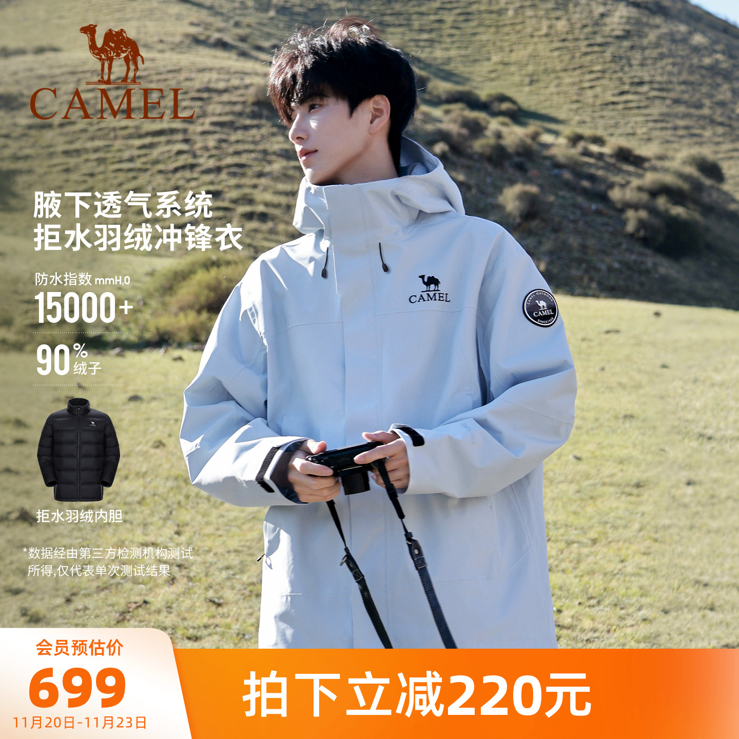 Camel diving blue king kaijia icon jacket men's three-in-one goose down jacket outdoor waterproof jacket women