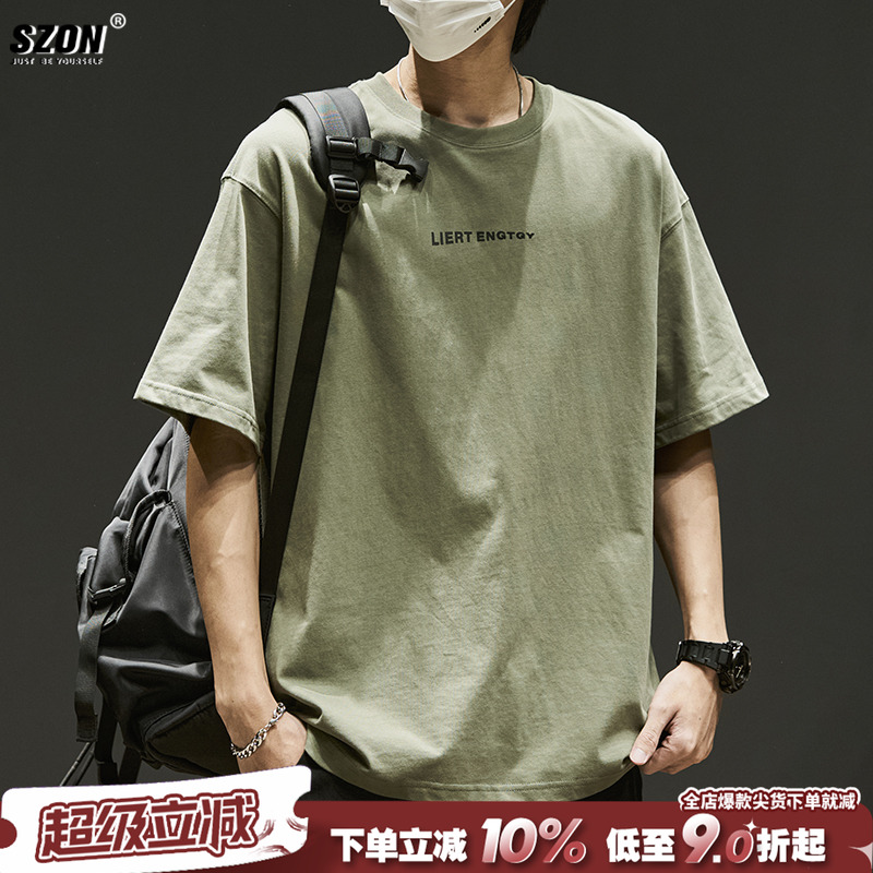 Short sleeve T-shirt men's Japanese simple cotton heavy men's loose trend versatile American top summer thin style