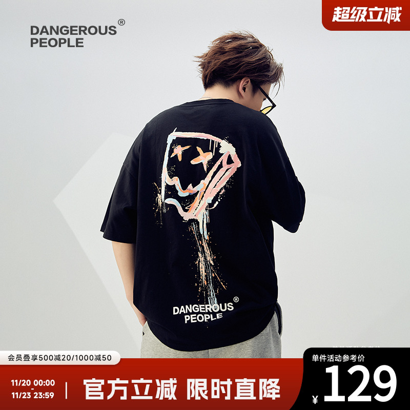 Dangerous people Xue Zhiqian dsp ink splashing paper bag people short sleeve T-shirt men's loose trend half sleeve body shirt