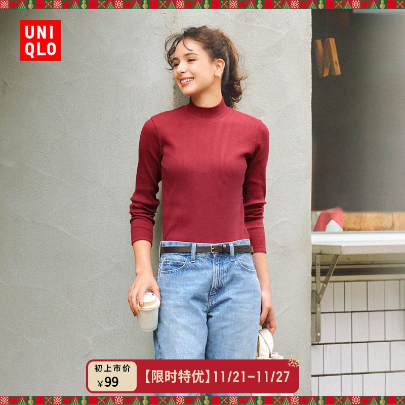 Uniqlo Women's Ribbed Turtleneck T-Shirt/Long-Sleeved Small Turtleneck with 25 Fall/Winter New 479588