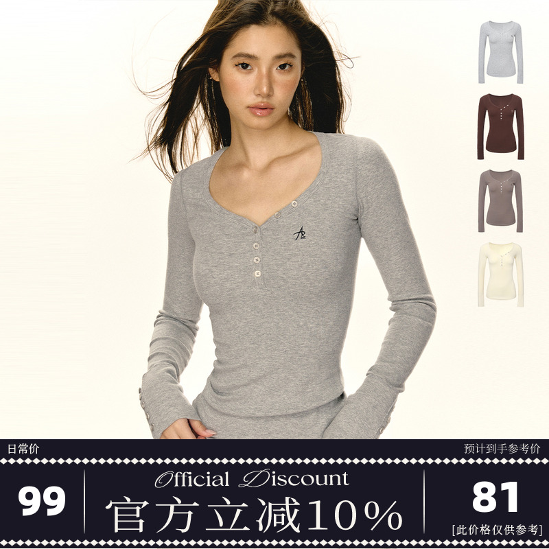 Banana Henry shirt women's long-sleeved T-shirt V-neck autumn and winter slim warm low-neck base shirt with a half-open collar white top