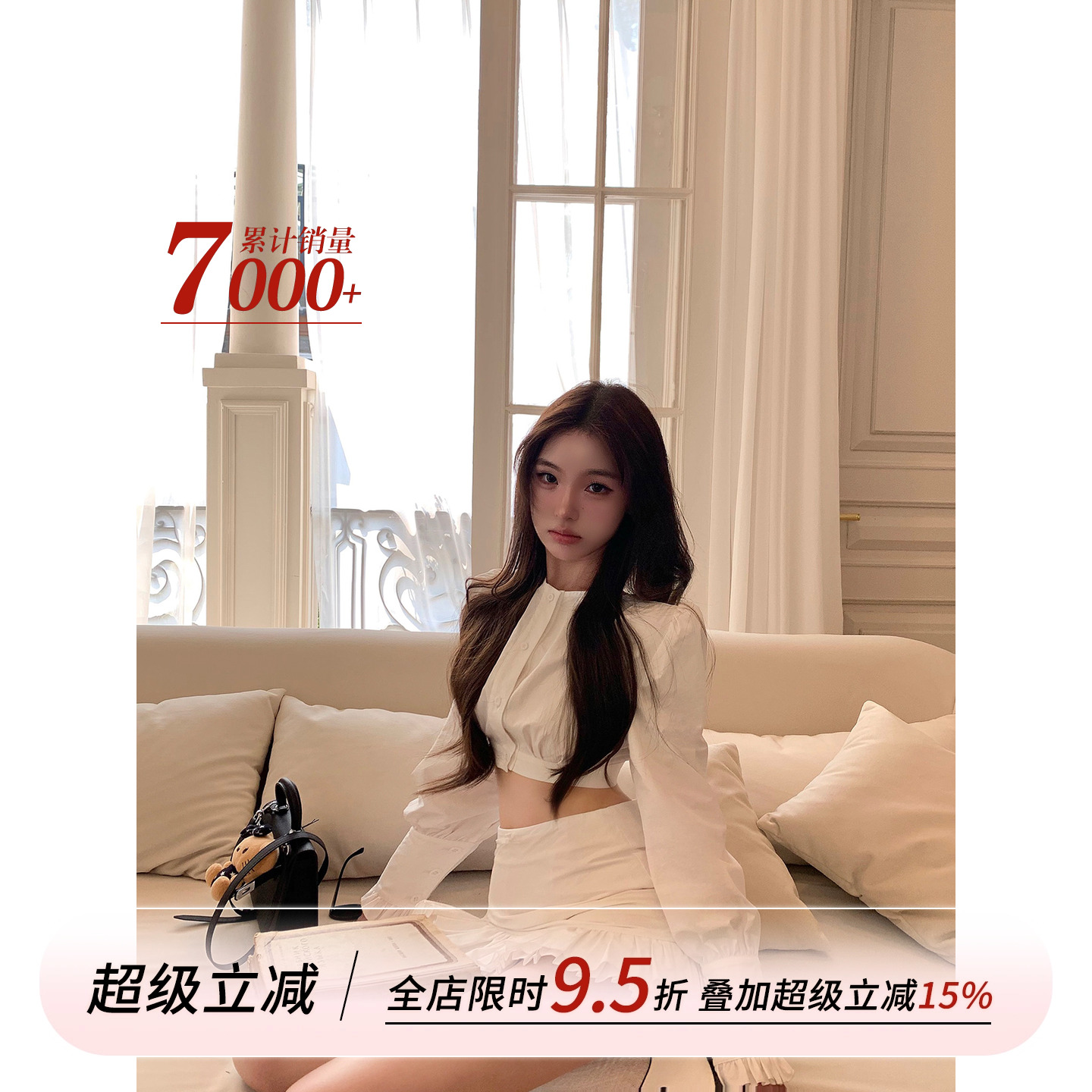 OYFF Fan Fan Lai Luo [Gardenia and Tea] white short shirt top short skirt set women's summer two-piece set