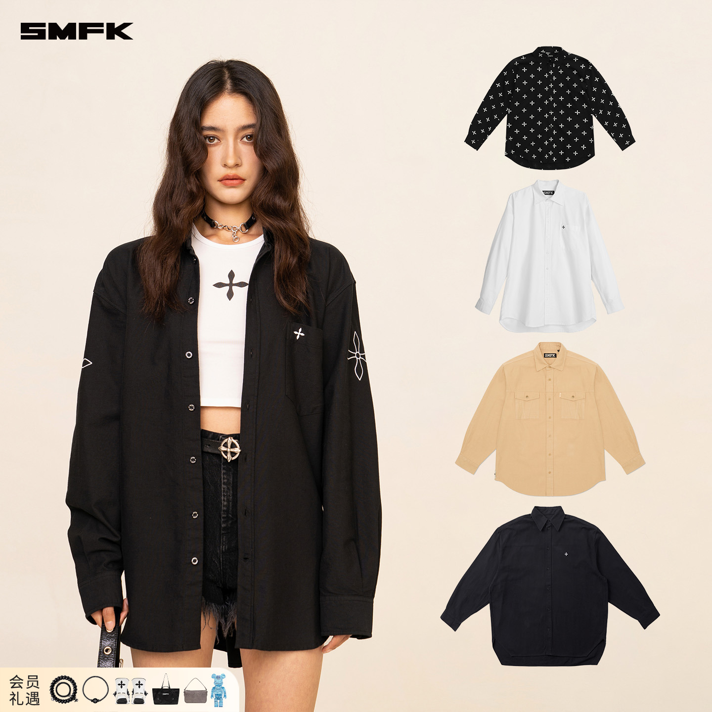 SMFK Cross Classical Shirt CP003B/W Celebrity Same Embroidered Solid Color Loose Top [Collection]