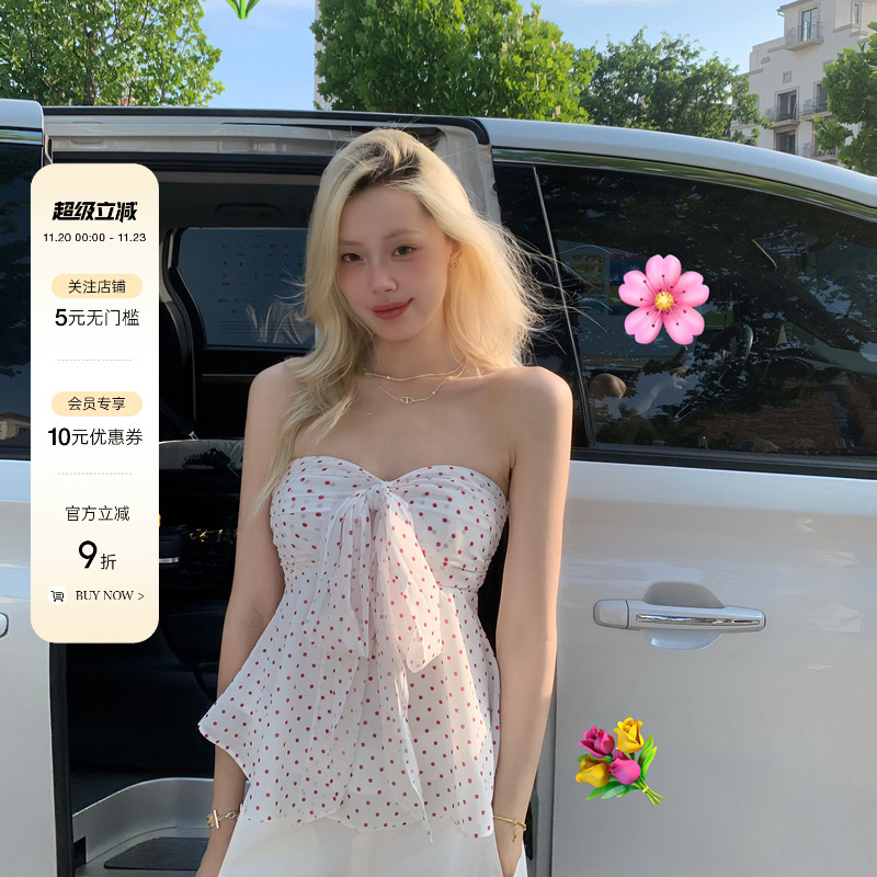 8uioio Cycle Love French Polka Dot Bandeau Vest Women's Summer 2025 New Slim Slimming Sleeveless Top
