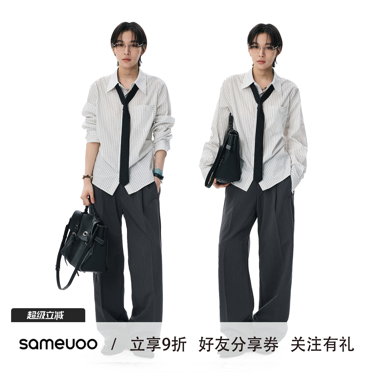 sameuoo free-range culture "Yinying" waist shirring modern neutral with white striped long-sleeved shirt