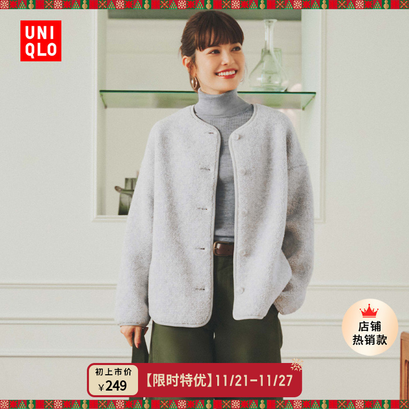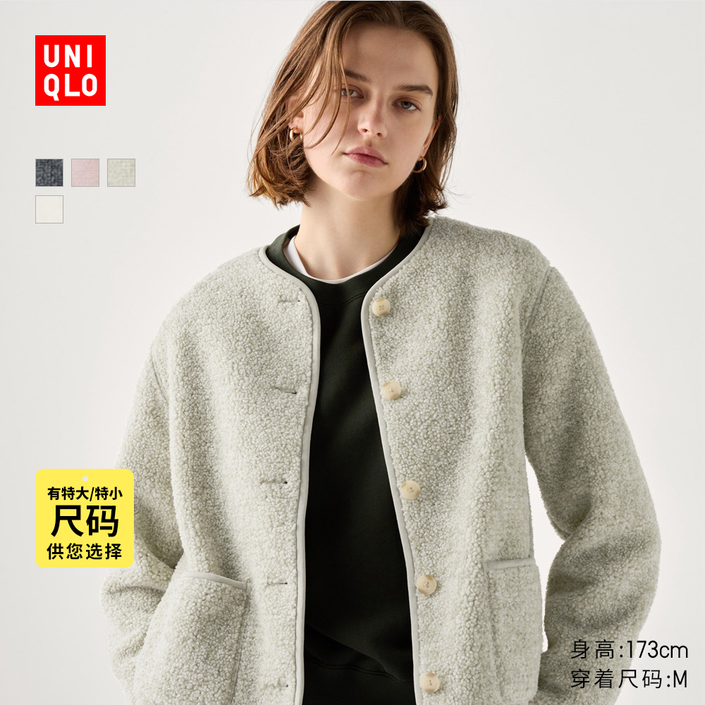 Uniqlo women's men's imitation lambswool fleece casual cardigan long-sleeved loose jacket winter new 479616