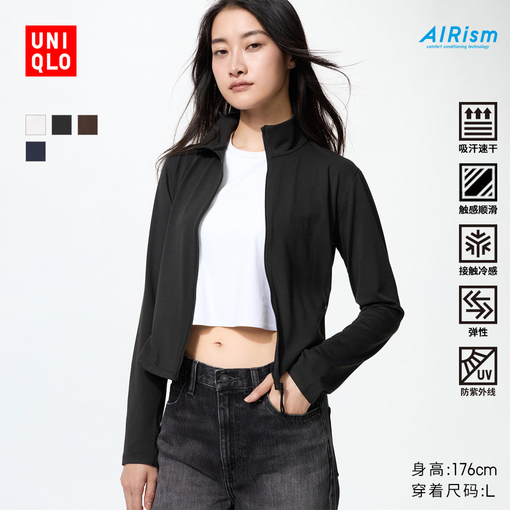 Uniqlo Women's AIRism High Stretch Zipper Jacket Long Sleeve Jacket Sunscreen Autumn and Winter New 479690