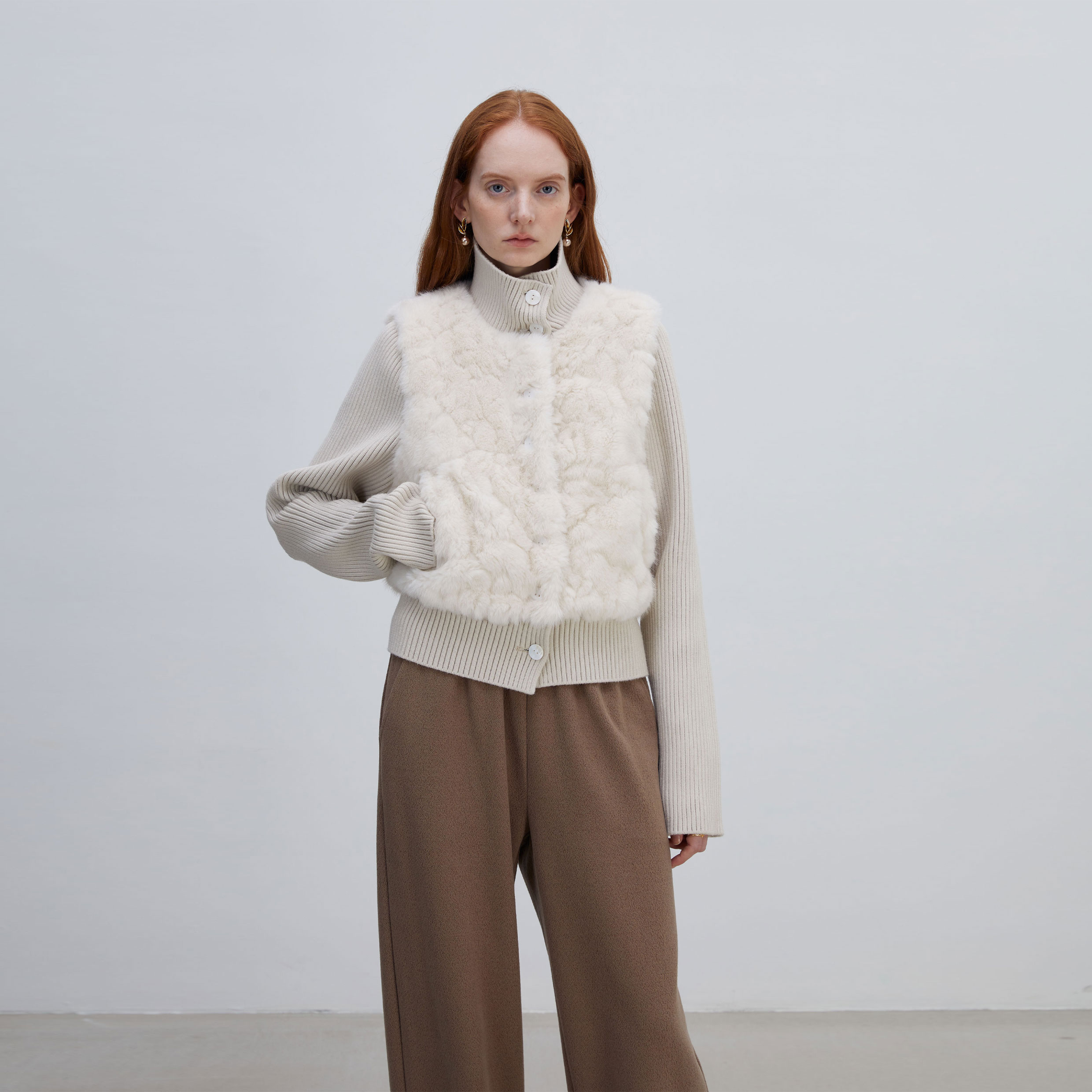1Mirro2025 New Winter French Knit Splined Cropped Coat Jacket Feminine Warm Environmentally Friendly Fur
