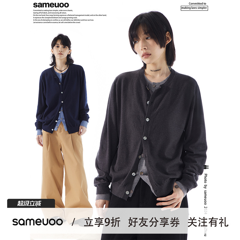sameuoo free-range culture fake two pieces with gray sweater cardigan women's autumn and winter genderless knitted sweater jacket