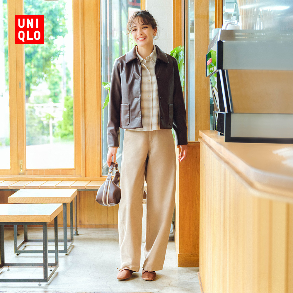 Uniqlo Women's Faux Leather Short Jacket/Jacket Casual Fashion Lapel Jacket 480060