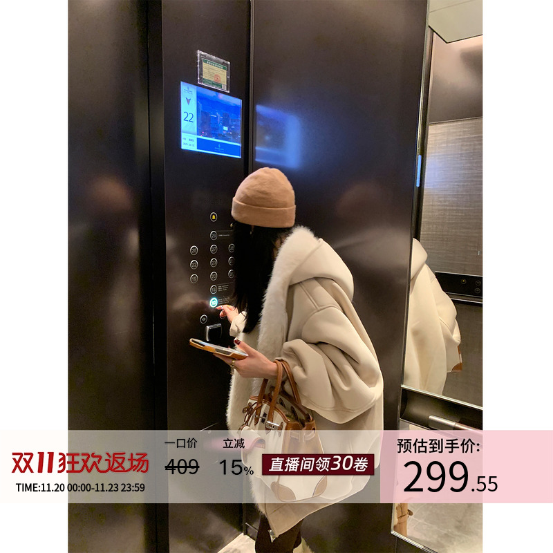 Okaaay [first snow texture] autumn and winter sweater cardigan jacket female thickened lazy sense lapel fox fur jacket