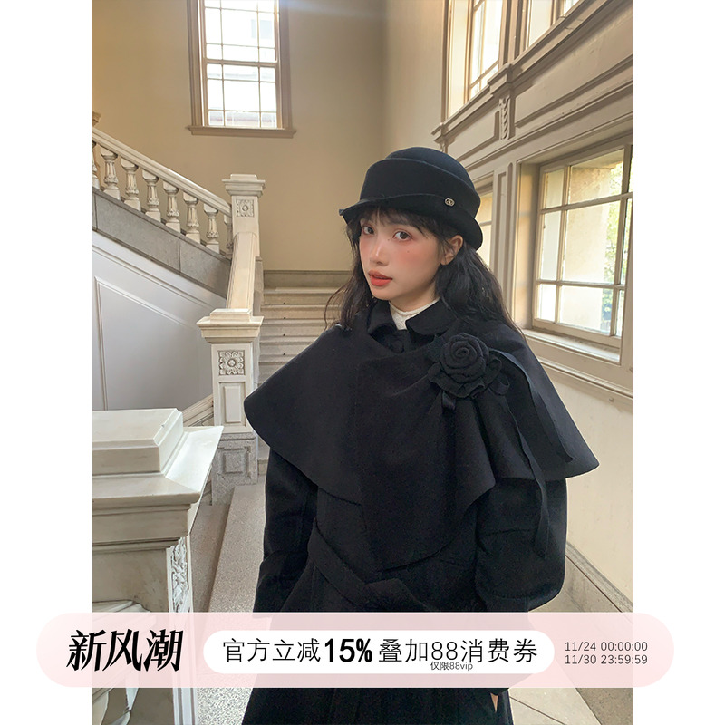DoggyQin 8w+ Ma family cloak/three-dimensional embroidery small woolen jacket winter Australian wool cape coat