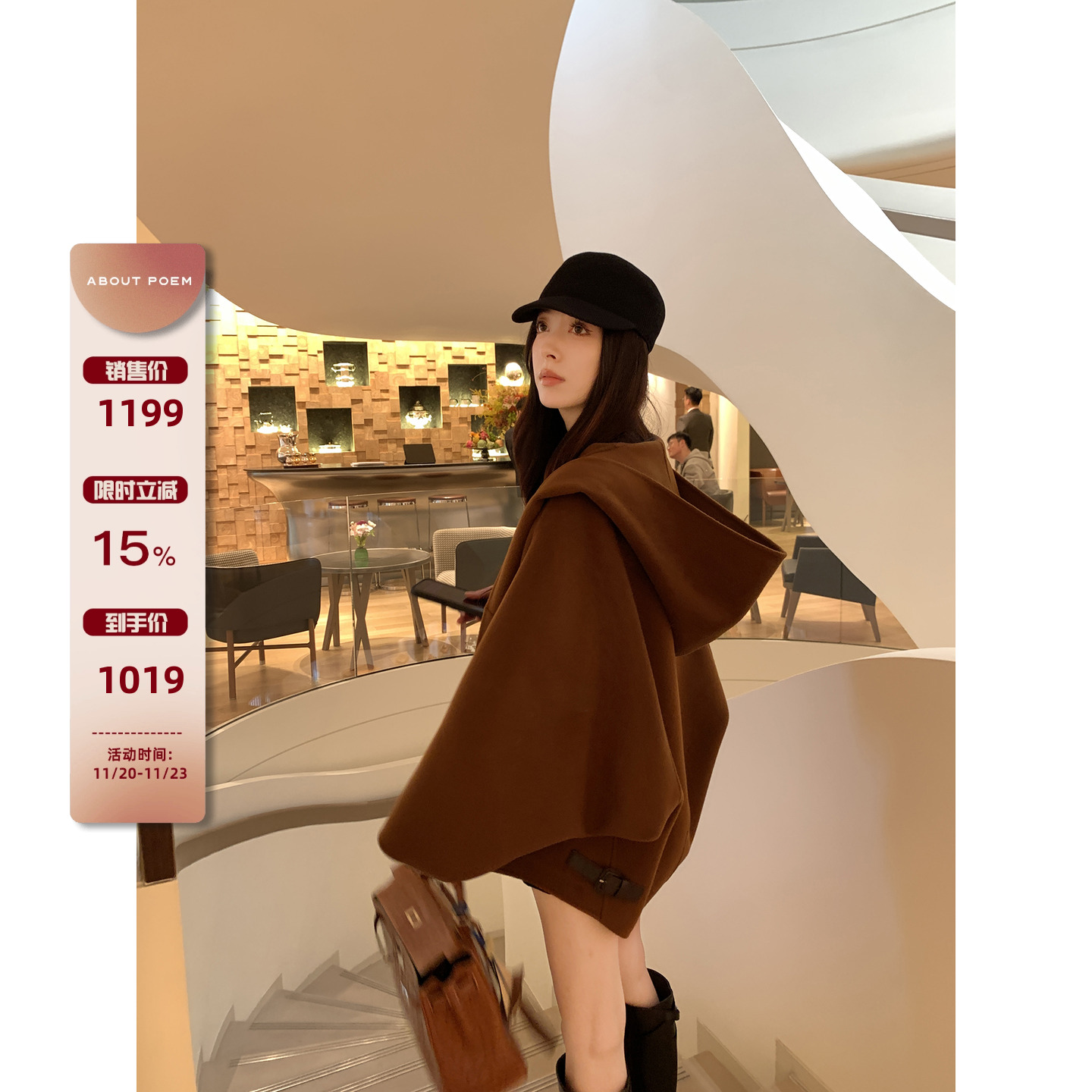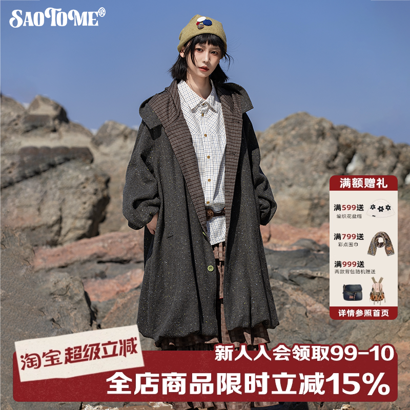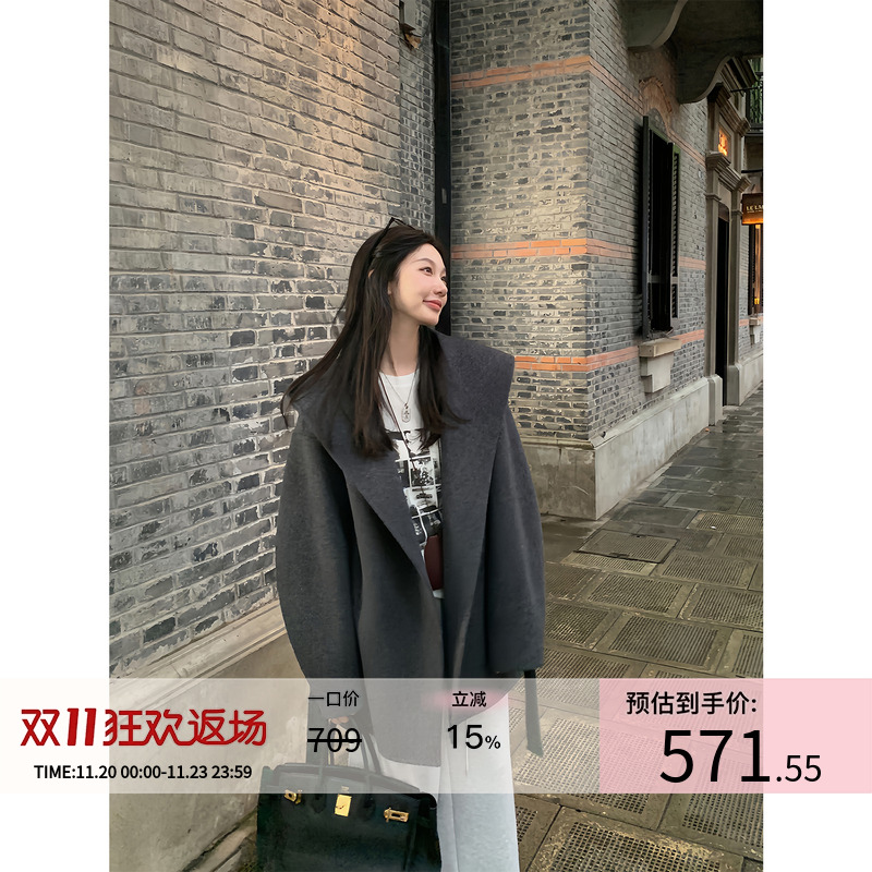 Mere Ouyang wool reversible woolen coat women's winter small short woolen loose hooded woolen jacket