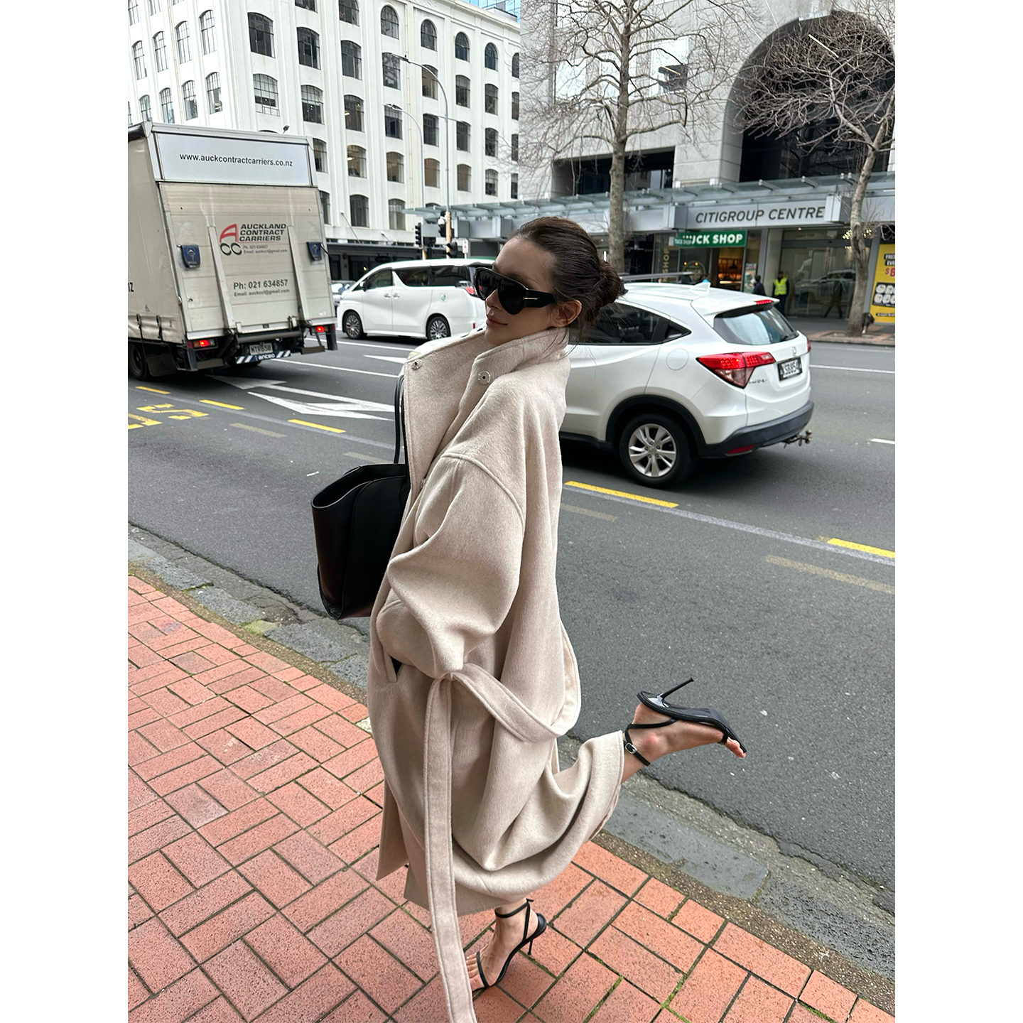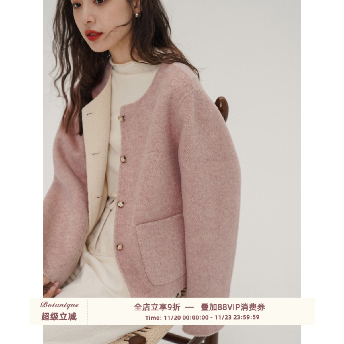 Xia Shiwen Australian imported 100% lamb wool handmade reversible tweed jacket PU leather buckle old money heavy coat