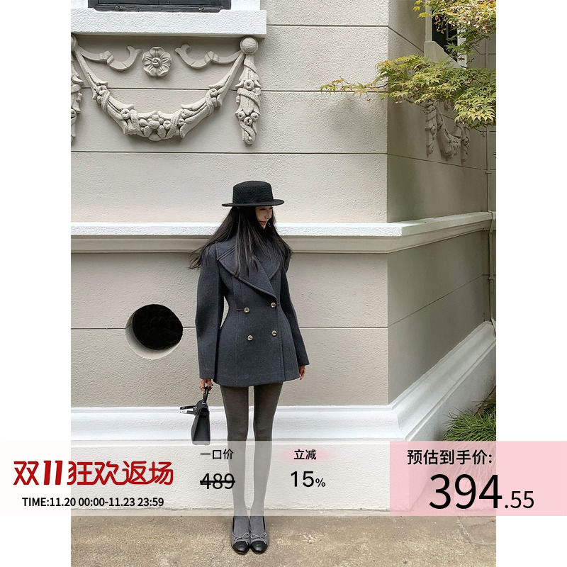 Mere Ouyang hourglass waist wool suit woolen jacket women's winter lapel high-end sense mid-length woolen coat