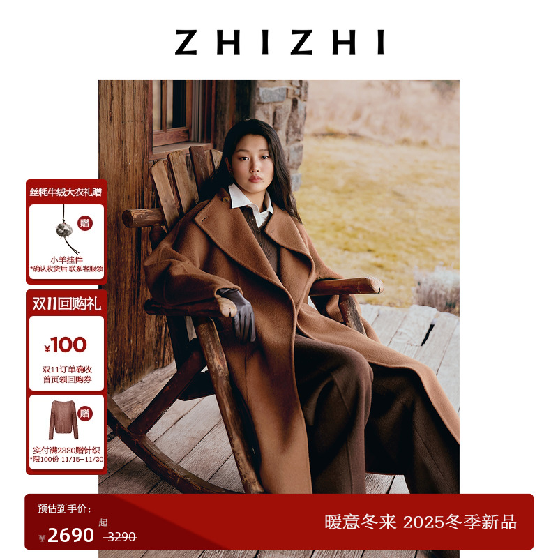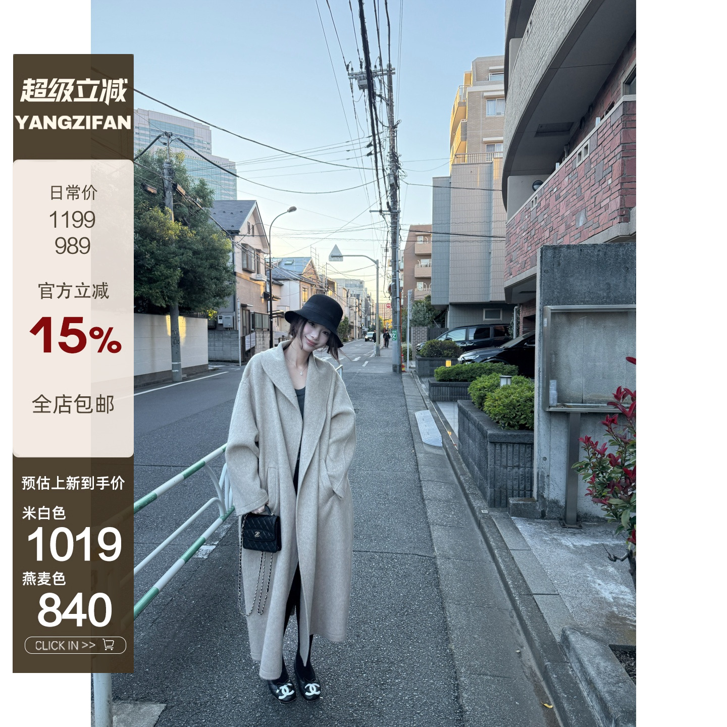 Yangzifan ther0w show coat camel wool mulberry silk old money sense reversible tweed coat
