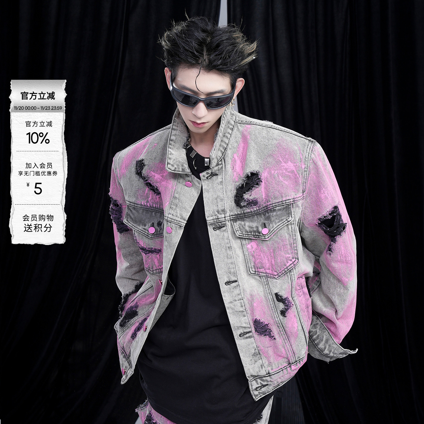 Wasteland style denim jacket men, European and American street graffiti, washed, old, ripped holes, autumn and winter shoulder pad jackets for men and women