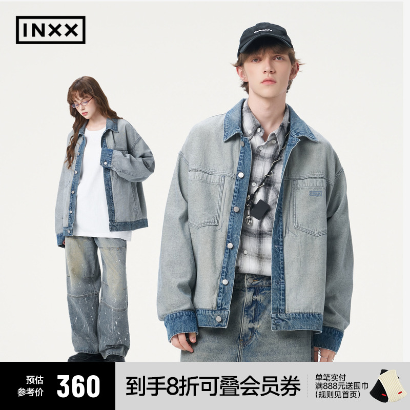 【INXX】Retro washed denim jacket men's front and back stitching street style jacket women's trendy brand loose top