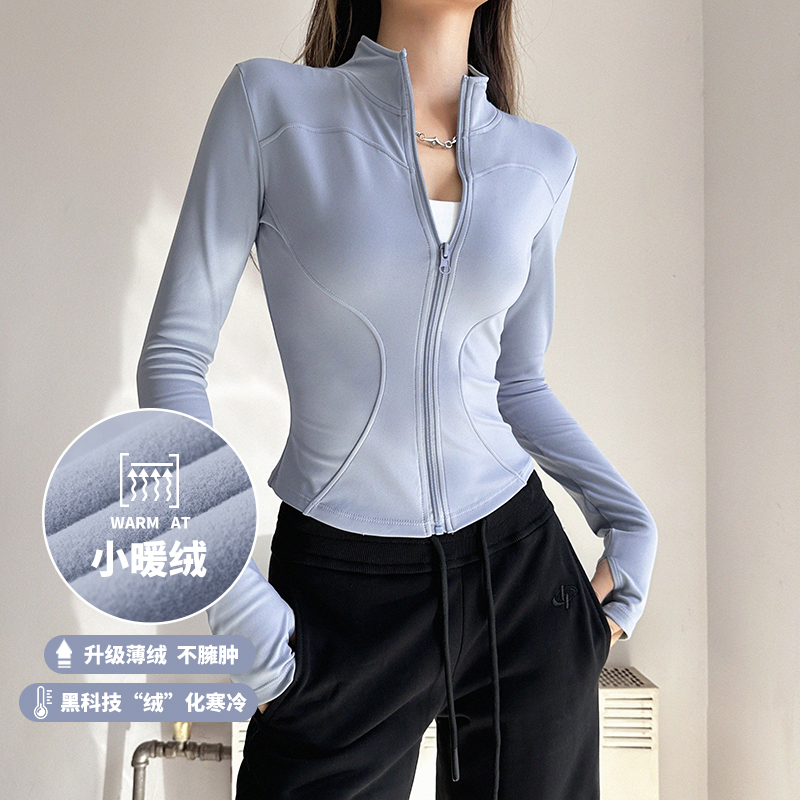 Cloud shell autumn and winter fleece sports jacket outdoor running fitness top women's training casual stand-up collar yoga clothes