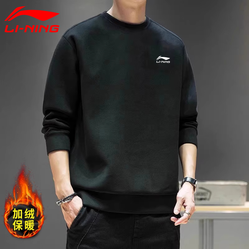Li Ning sweatshirt men's autumn and winter new black crew neck fleece pullover plus-size loose jacket casual long-sleeved top