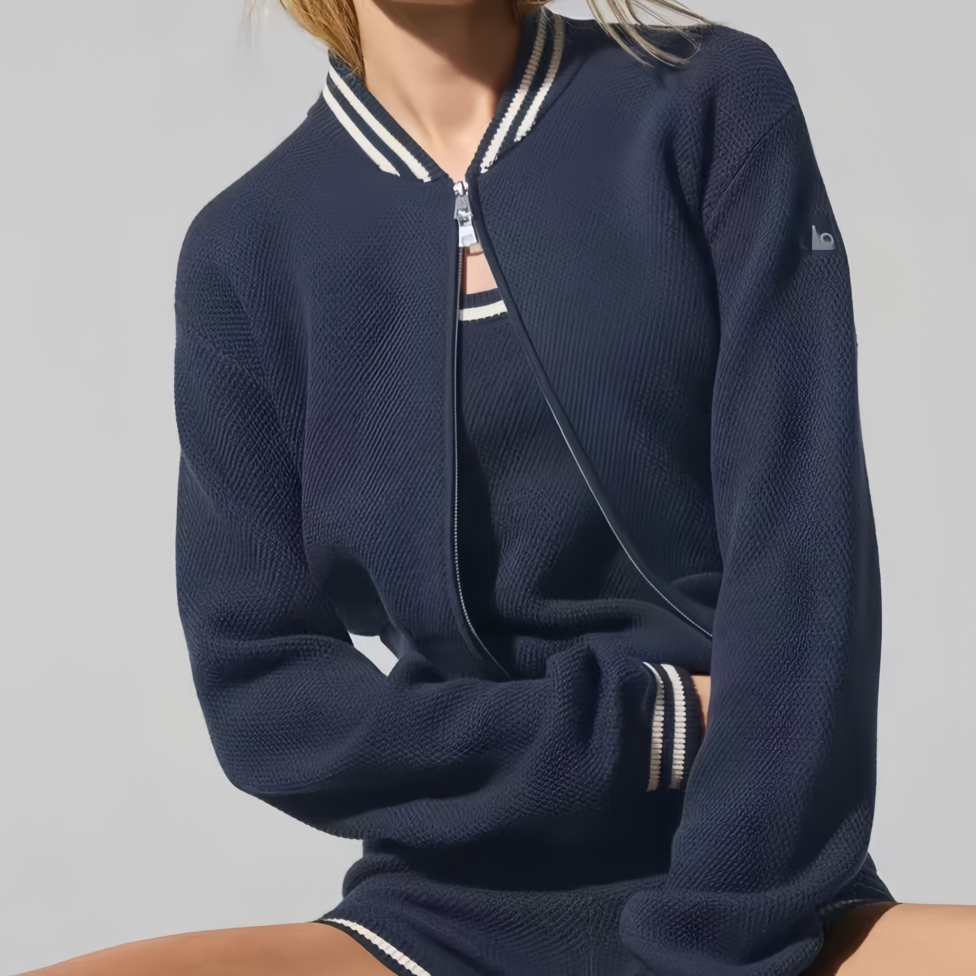 2025 Fall/Winter New Products: Contrast Striped Baseball Collar, Knitted Jacket, Sportswear Top, Women's Outdoor Tennis Suit, Outdoor